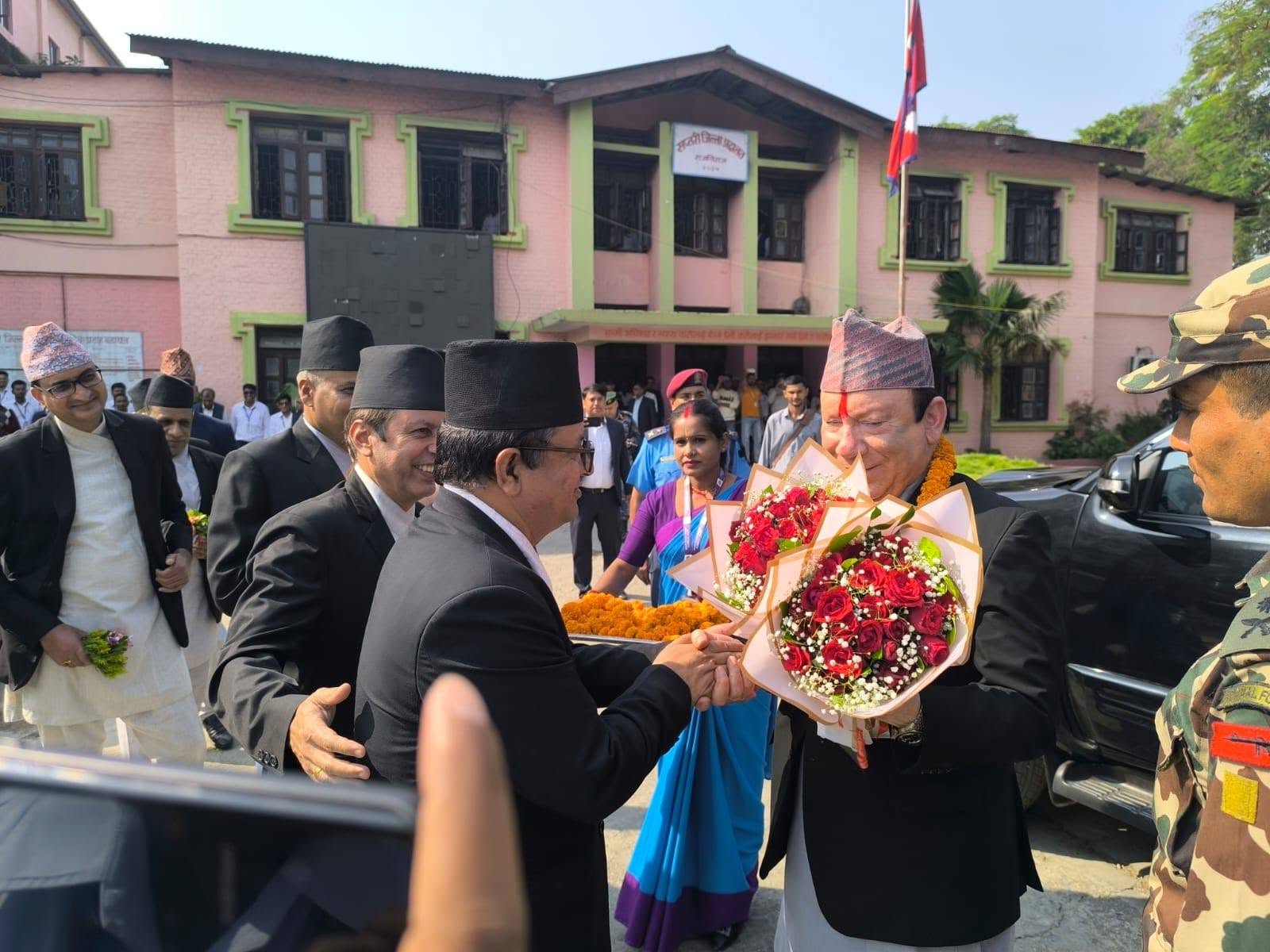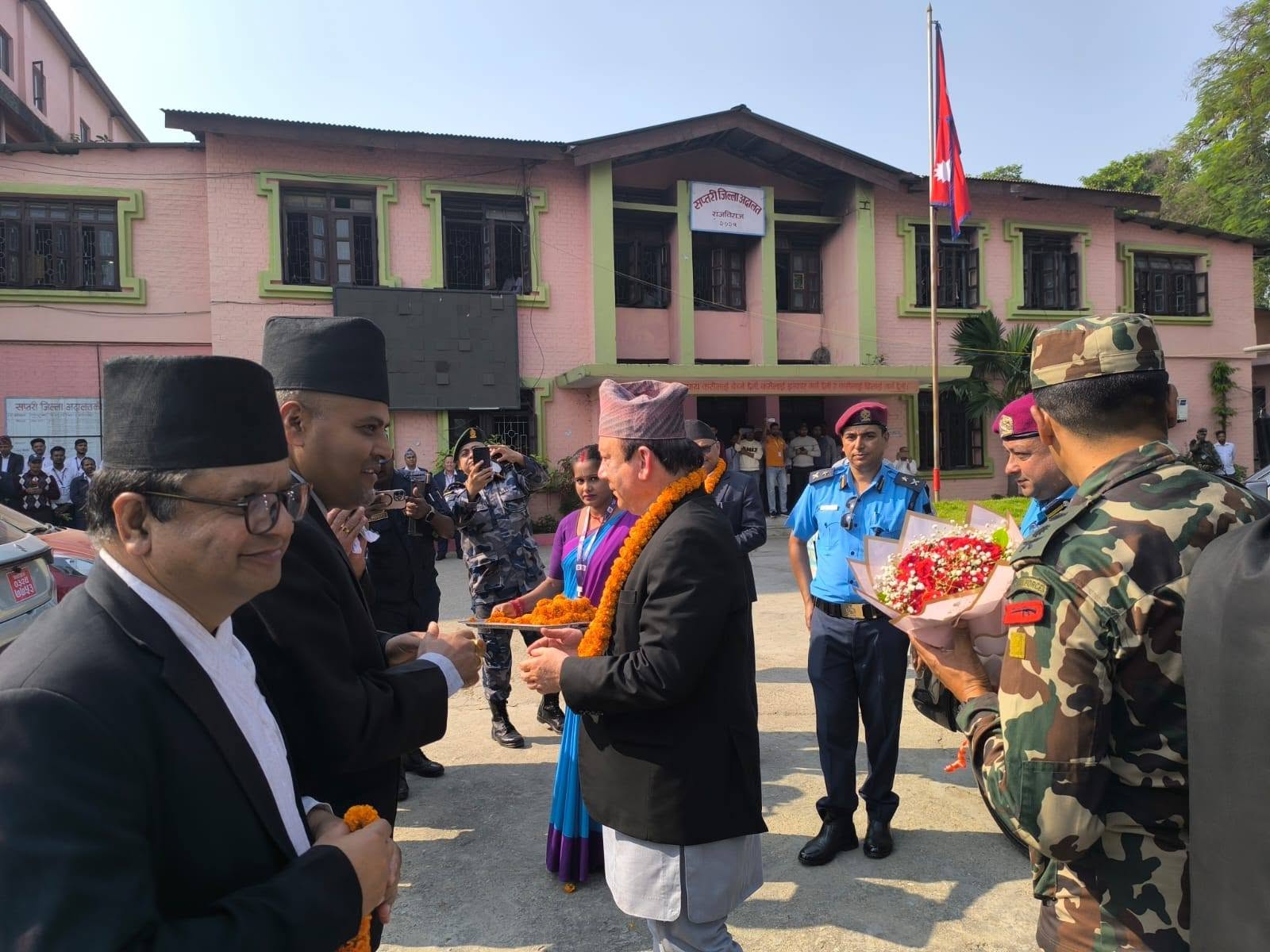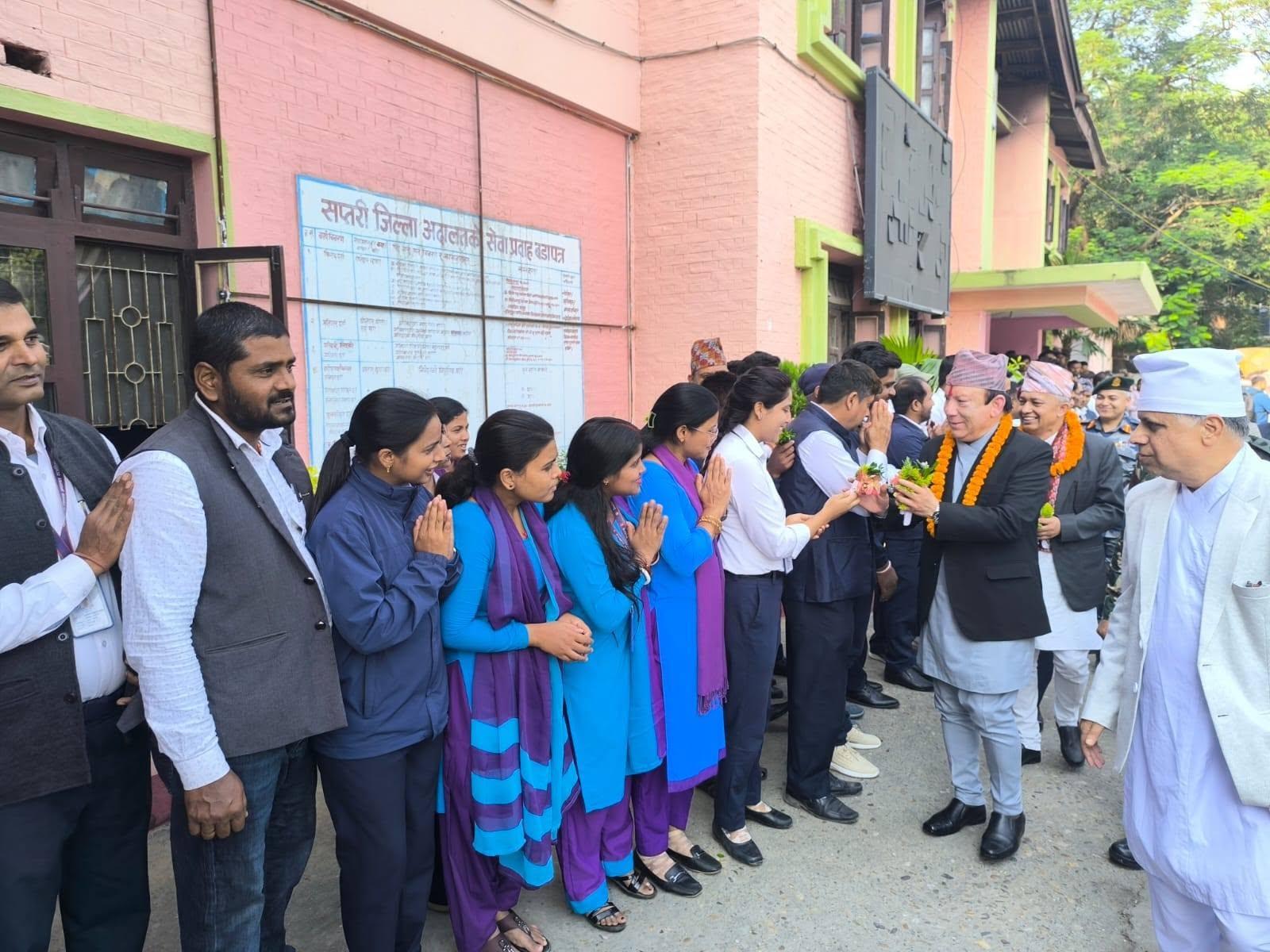 सप्तरी — प्रधानन्यायाधीश प्रकाशमानसिंह राउतको नेतृत्वमा रहेको टोली शुक्रबार सप्तरी जिल्ला अदालत पुगेको छ। प्रमुख रजिस्ट्रार सहितको टोलीलाई अदालतका स्रेस्तेदार श्यामहरि अधिकारीले स्वागत गर्दै अदालतको वर्तमान अवस्था, पुनर्निर्माणको प्रगति सहितका विषयमा जानकारी गराएका हुन्।