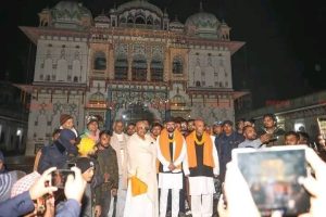जनकपुरधाम, ५ माघ । राष्ट्रिय स्वतन्त्र पार्टी (रास्वपा) का वरिष्ठ नेता बालेन्द्र शाह (बालेन) आज बिहानै जनकपुरधामस्थित ऐतिहासिक जानकी मन्दिरमा आयोजित विशेष आरतीमा सहभागी भएका छन्। मधेस बलिदानी दिवसको अवसरमा आयोजित ‘परिवर्तन उद्घोष सभा’ मा सहभागी हुन जनकपुर पुगेका नेता शाहले बिहानै मन्दिर पुगेर पूजाअर्चना गरेका हुन्।